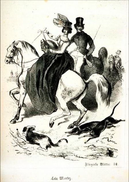 Вольно или невольно подражая знаменитой Жорж Санд, Лола прогуливалась по городу в брюках, с сигаркой во рту и неизменным хлыстом, торчащим из-за голенища начищенных сапог.