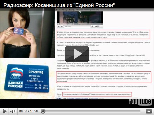 Смотрите видео с записью радиоэфира от 01.06.2011 с кокаинщицей из "Единой России" Еленой Мироненко. Запись снабжена коротким авторским (не моим) вступлением, оно специально для [info]miss_tramell .