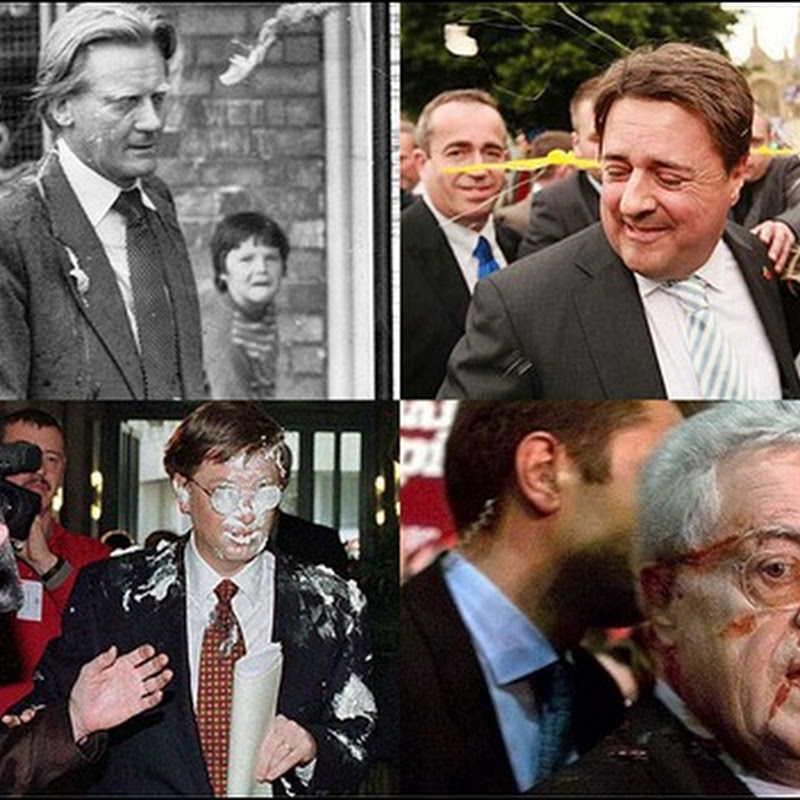 20. Февраль 2000: Тогдашнему министру сельского хозяйства Нику Брауну размазали по лицу шоколадным эклером на ежегодной конференции Национального профсоюза фермеров в Лондоне.