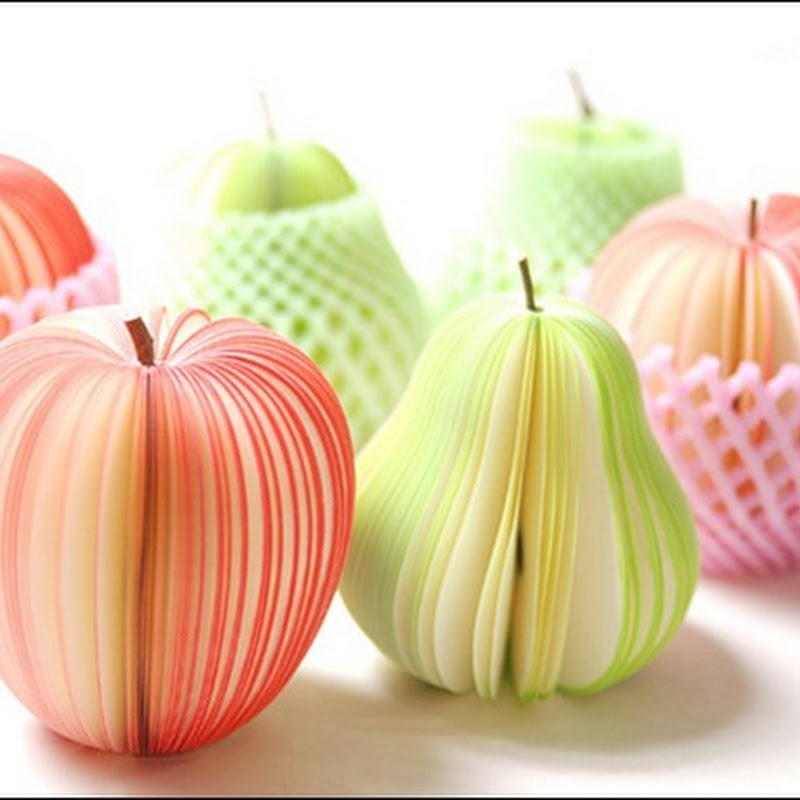 Клейкие листочки для записи дизайн-студия D-Bros оформила в виде сочных надрезанных фруктов. В сетке, подобно той, в которой продаются настоящие фрукты, упаковано по 150 листочков на деревянном стебельке.
