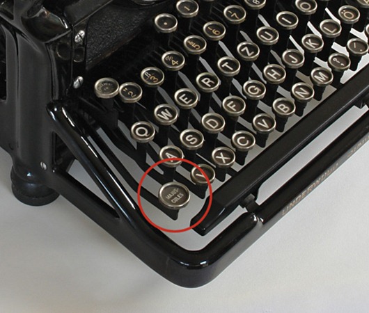 В то время, когда ещё люди активно пользовались печатными машинками, для набора заголовков была функция задержки клавиши Shift. Это было сделано, конечно, для удобства. Чтобы не держать нажатой клавишу Shift, на некоторых печатных машинках была клавиша-ключ, при нажатии на которую Shift западал.