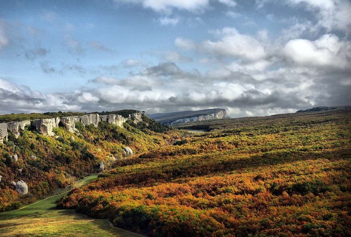 Вид с пещерного города на окрестности. Осенний пейзаж.
