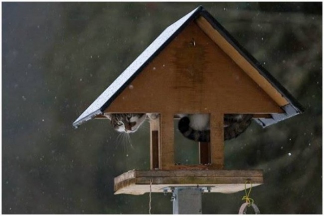Наступила календарная весна, и птицы потянулись обратно домой. Но, пока они в пути, их излюбленные места занимают коты. Деревья, гнезда и кормушки — всюду они. Трудно понять, почему котики выбрали именно эти места. Перед вами – фото-подборка  котов, которые плевать хотели на птичьи права…